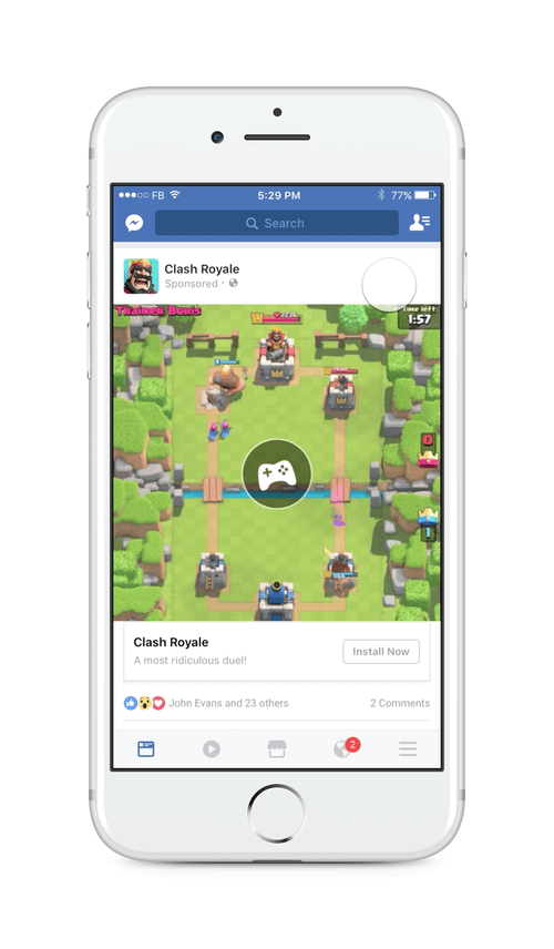 I provided strategic leadership for the app install ads team by prototyping, testing, and building the consumer and advertiser experiences for HTML interactive Playable Ads. Through extensive user research and iterative design, I shaped a first-of-its-kind interactive format that was highly engaging yet not disruptive to the News Feed experience. Leveraging both research insights and performance data, I persuaded the highly risk-averse News Feed team to approve the launch and subsequent expansion of Playable Ads. In parallel, I designed the full suite of advertiser-facing tools that allowed partners to test and refine how HTML5 games looked and felt on Facebook and off-platform.